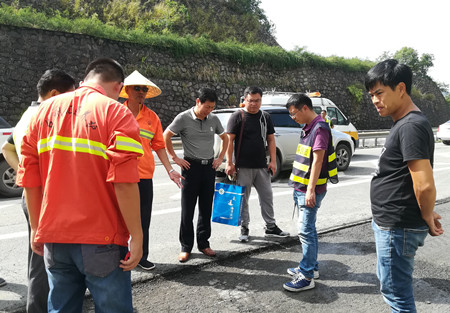 集團(tuán)總工程師江輝到臨海南匝道現(xiàn)場查看病害
