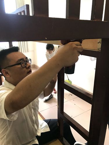 圖為員工拆除舊床 “這個(gè)房子是十幾年前建造的,每間宿舍的規(guī)格都不一樣,現(xiàn)在收費(fèi)所人員增多,房間比較緊缺。”該所所長楊瑩瑩為解決員工的后顧之憂,使員工在住宿中感覺如家般溫暖,早在今年1月份,她便開始認(rèn)真籌備,并親自拿著卷尺細(xì)細(xì)測量每一間宿舍的尺寸,詳細(xì)記錄在紙上,如此細(xì)細(xì)琢磨,以盡可能得到最優(yōu)的方案和最佳的安排,給員工創(chuàng)造出良好的工作生活環(huán)境。