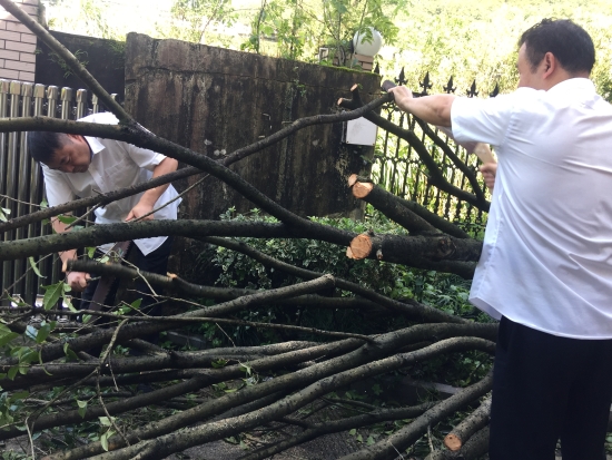 圖為臺(tái)風(fēng)過后隧道所人員給倒伏的樹木截枝