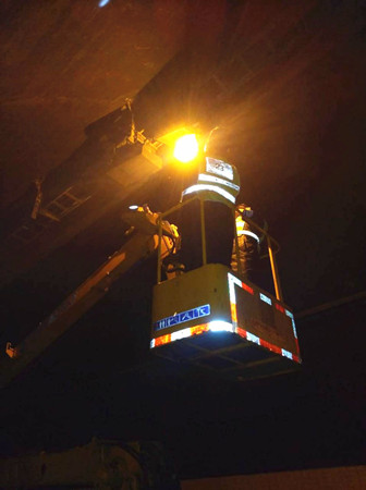 1月31日上午,該所執(zhí)勤隊(duì)員在隧道巡邏時(shí)發(fā)現(xiàn)溫向快車道一盞照明燈被超高車刮蹭而導(dǎo)致燈罩損壞,燈頭及組件掛落蕩在橋架下,很容易造成二次事故而引起人員傷亡。一發(fā)現(xiàn)該隱患,隊(duì)長李新波立即向所長李立巍報(bào)告險(xiǎn)情,馬上聯(lián)系高速交警、指揮中心人員,要求立即封道搶修。 大溪嶺隧道所在險(xiǎn)情發(fā)生的第一時(shí)間作出緊急措施,兩名執(zhí)勤隊(duì)員在溫向隧道洞口卡口預(yù)警,李立巍向維養(yǎng)中心調(diào)來登高車,三名電工隨即進(jìn)隧道維修脫落的燈罩。經(jīng)過25分鐘的快速搶修,目前設(shè)備已能正常使用,隧道恢復(fù)通行。 李新波