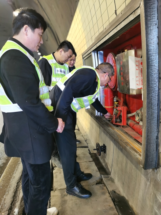 圖為檢查組檢查隧道內的消防設備