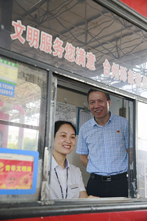 “今天車流量多嗎?你們是公司形象的代表,請把最優(yōu)質(zhì)的服務提供給他們。”在臺州收費所一號崗亭里,張建平一邊慰問當班收費員,囑咐他們注意安全和休息,一邊鼓勵他們堅持做好文明服務。他還到黃土嶺隧道所、臨海南收費所慰問當班執(zhí)勤隊員和收費員。此時,各所食堂管理房正處于改造階段,他仔細查看了各所食堂和工作場所,了解大家的飲食和工作環(huán)境。