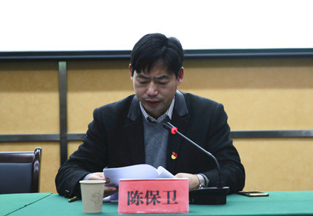 圖為集團黨委委員、副總經理陳保衛傳達文件精神
