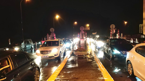 圖為免費時段結束后的車流