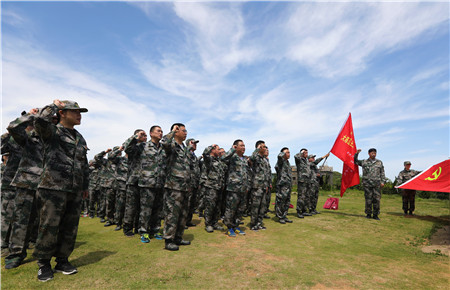 圖為黨員參觀大陳島墾荒紀念館 “讓我們重溫入黨誓詞,牢記黨員使命。”當鮮紅的黨旗在墾荒紀念碑下鋪開的時候,大家的思緒拉回現實。激情燃燒的歲月是歷史,從歷史中汲取力量,不忘初心,弘揚和傳承艱苦創業精神,鍥而不舍地克服集團發展中的難關難題,才是此行活動真正的意義所在。“我志愿加入中國共產黨......”面向黨旗,大家齊齊舉起右手,跟隨集團黨委委員陳保衛一起大聲宣誓,墾荒碑下回聲嘹亮,一句句錚錚誓言體現出黨員干部無比堅定的信念。