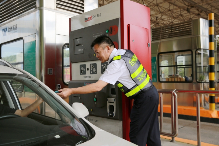 “平時看文明服務錄像的時候感覺收費員工作很簡單,等到自己操作的時候真的是雙手不聽腦子使喚啊......”正在溫嶺西收費所3號崗亭收費的副總經理章海峰一邊自言自語著“體驗感”,一邊擦了下額頭上的虛汗。
