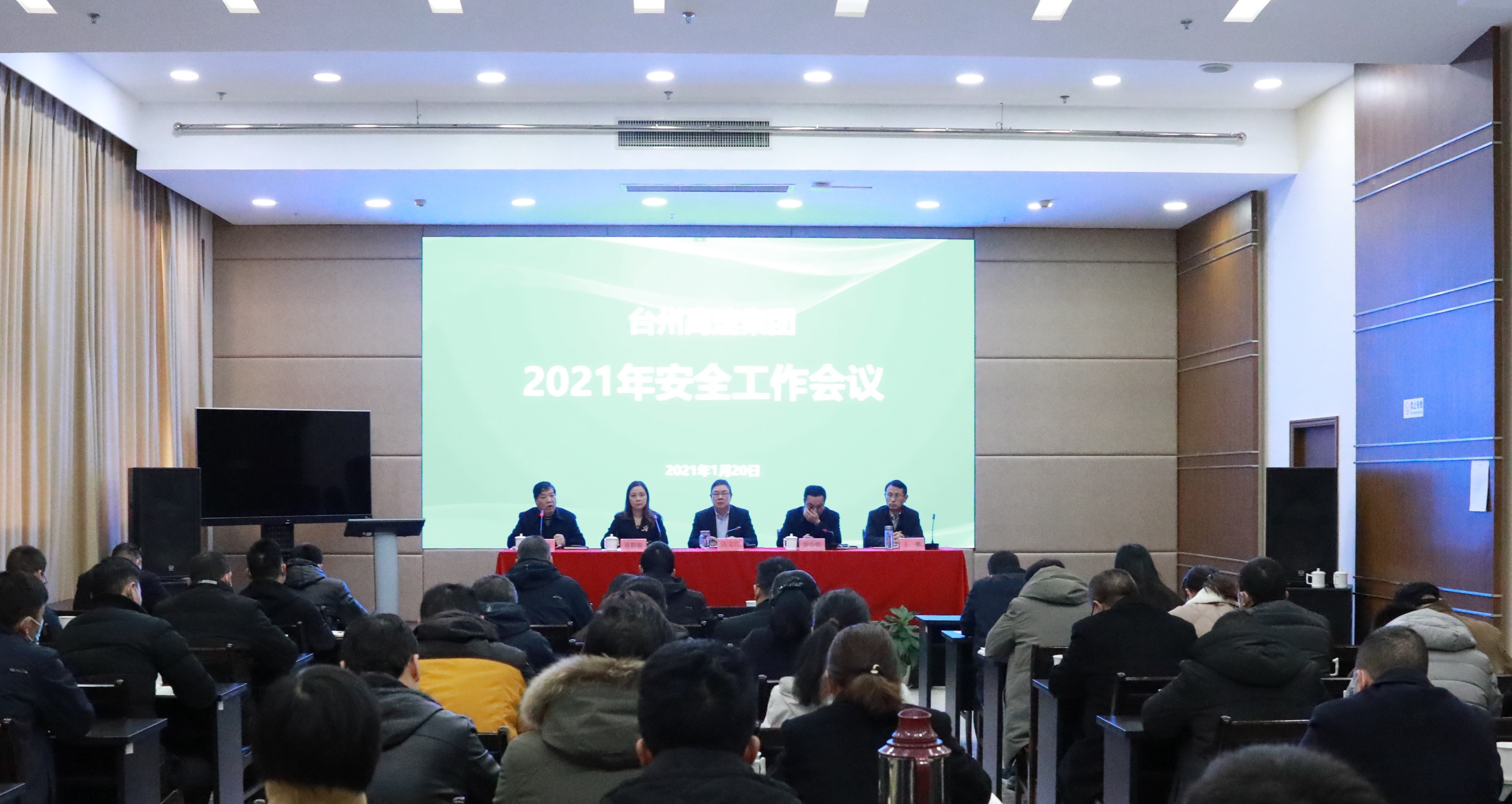 1月20日上午,臺州高速集團召開2021年度安全工作會議,公司黨委書記、董事長、總經理陳文波,黨委委員、副總經理羅小將,黨委委員、總會計師章彩霞,董事會秘書、副總經理王雍,安全總監、工會主席項同富,中層以上人員,以及受表彰先進個人出席會議,會議由羅小將主持。