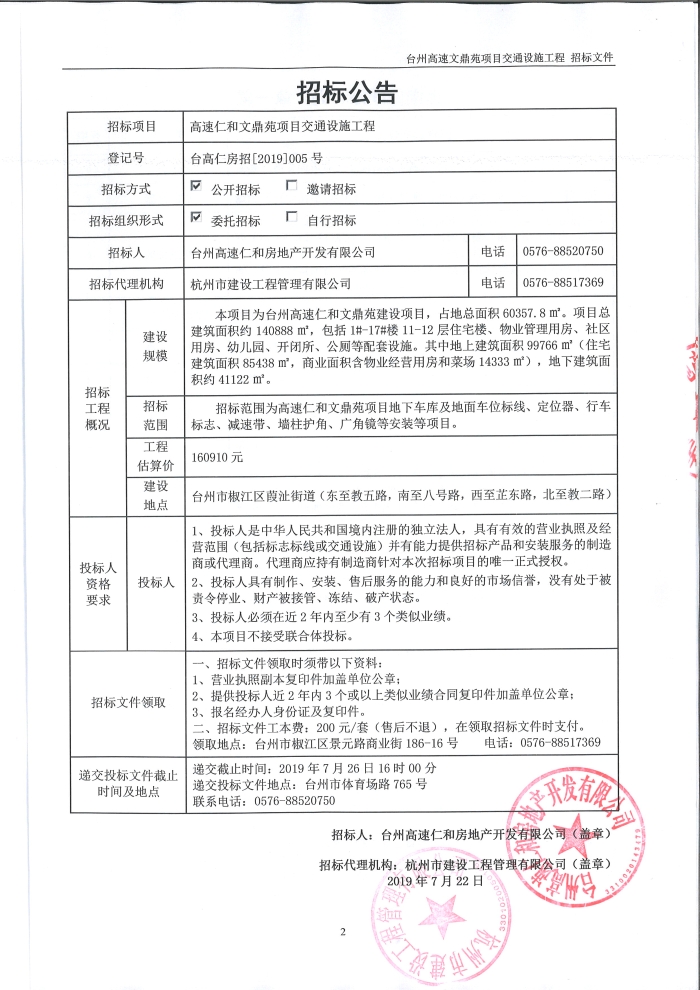 高速仁和文鼎苑項目交通設施工程招標公告