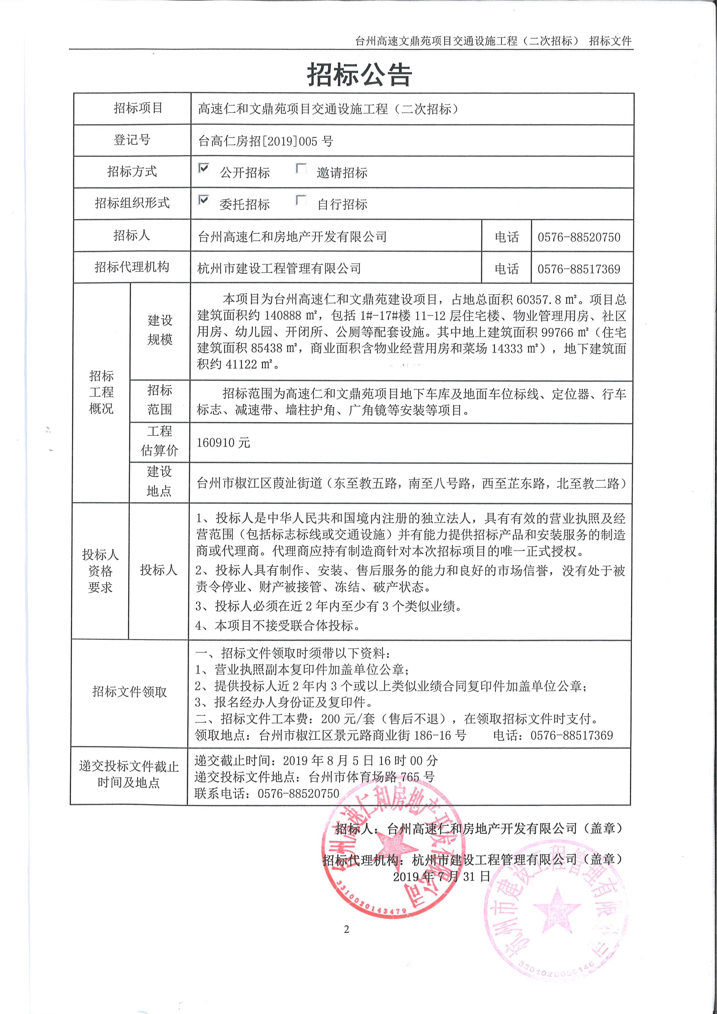 高速仁和文鼎苑項目交通設施工程招標公告