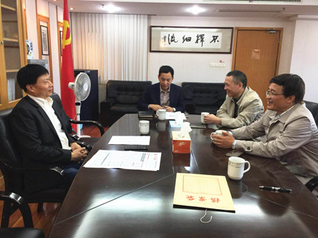 圖為市國資委主任徐豪和集團總經(jīng)理張建平一起走訪市財政局股東單位