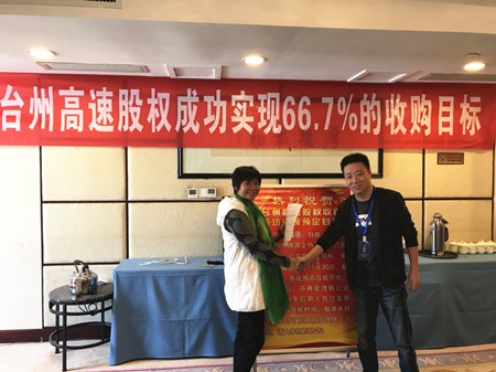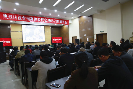 臺州高速股權集中和優化工作領導小組辦公室主任、臺州高速集團總經理張建平鄭重地宣布:“至此,全市共完成臺州高速股權轉讓6947萬股,臺州市屬國企及黃巖財務開發公司合計持股數1.441億股,完成了66.7%的預定收購目標。”