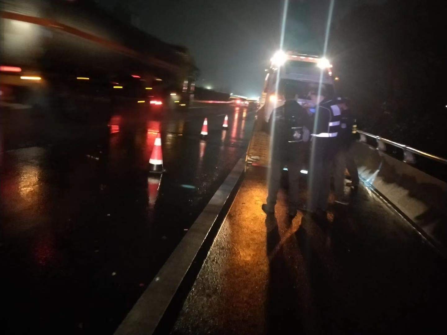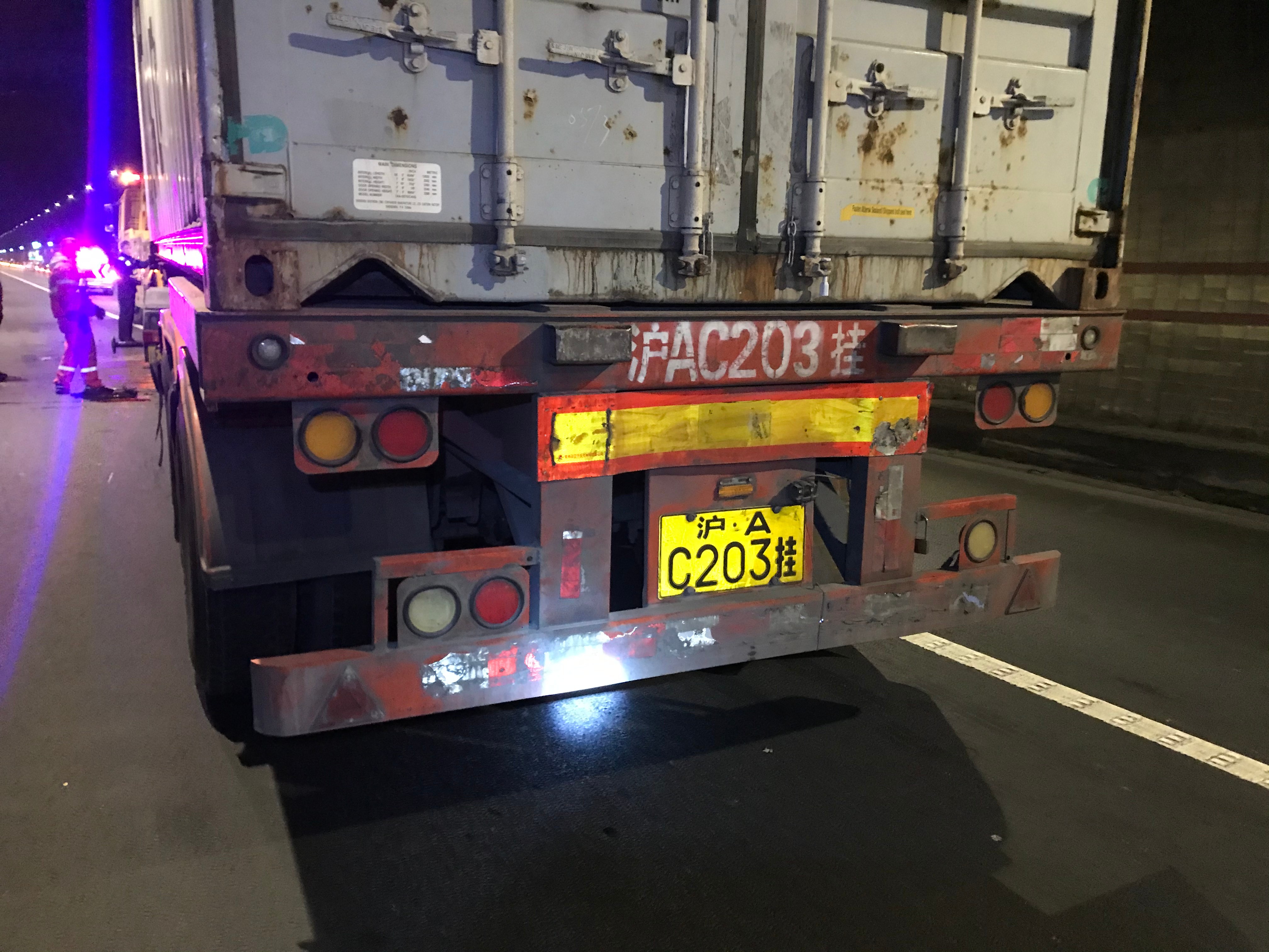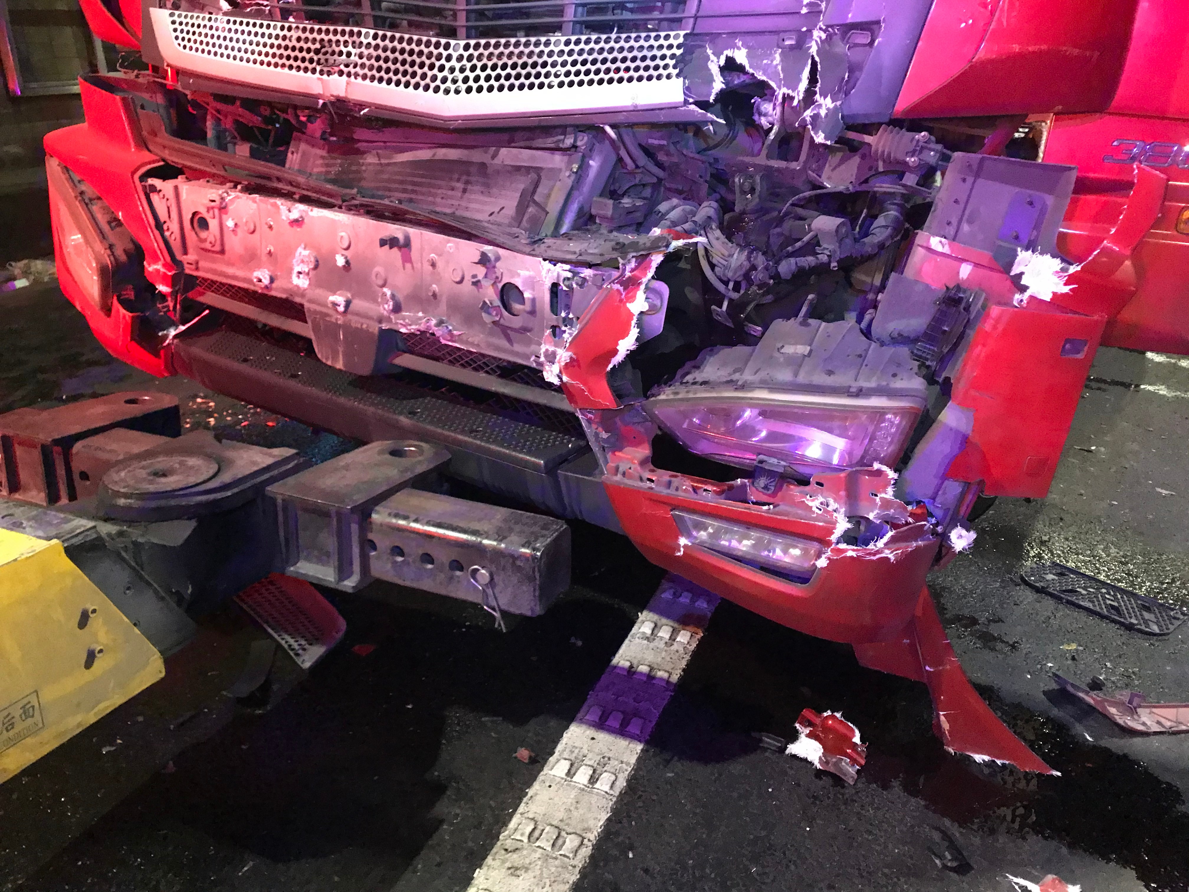 1月14日晚21:30分,甬臺溫高速寧波方向距離臺州南收費(fèi)站約5公里的路段,一輛半掛車與一輛小轎車發(fā)生碰撞,現(xiàn)場急需一大一小兩輛拖車。