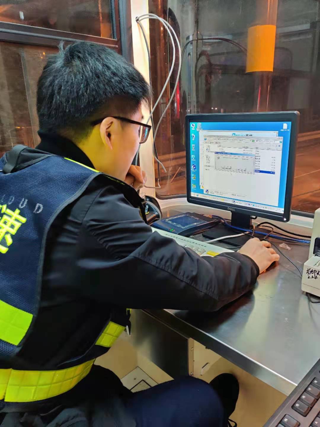 22日一早,中心電工配合廠家人員在車道繼續(xù)查線、接線,安裝崗?fù)さ幕A(chǔ)設(shè)備,系統(tǒng)員則在機房負(fù)責(zé)安裝新電腦的收費系統(tǒng)及相關(guān)設(shè)備驅(qū)動。大家各司其職、各盡其責(zé),僅一天時間就將近百根線纜一一對應(yīng)并成功與外圍設(shè)備對接,與此同時,系統(tǒng)員也恢復(fù)了原電腦中的數(shù)據(jù)并成功導(dǎo)入到新電腦中,避免了數(shù)據(jù)中斷。在修復(fù)過程中,搶修人員也曾遭遇各種困難,有些設(shè)備安裝需要專用工具,部分零散配件、電源等一般商鋪都沒有供應(yīng),但這些并沒有難倒他們,而是利用各自資源,跑遍了市區(qū)的大街小巷,或借或買,最后都被一一解決。