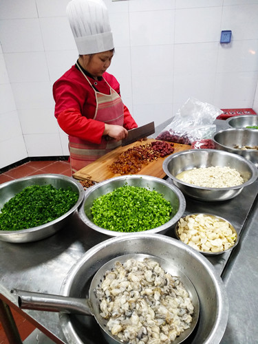 臺州的元宵節是從正月十四開始的。十四吃咸羹、十五吃甜的山粉糊。下午兩點,臺州所的食堂大姐們就開始忙活了。 早在前幾天,來自臨海的食堂大姐利花,就開始為臺州所的元宵節準備食材清單。在她的家鄉四岔,咸的糟羹里是要放海蠣的,她說一到正月十四,滿街都會有剛從牡蠣殼里現挑出來閃著新鮮青色的海蠣肉賣,但在黃巖,找遍菜場,只有冰凍的泛著白光的海蠣肉,也不是每天都有賣,有時還要靠運氣才能買到。利花有些無奈,她想,都是離海不遠的地方,為什么就沒有新鮮的海蠣?她也許不知道,在黃巖一帶,大家還是喜歡吃甜的山粉糊,所以不需要海蠣。